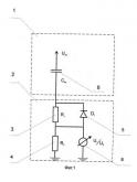 Фиг.1 - Электрическая схема с емкостным высоковольтным плечом и последовательным соединением сопротивлений низковольтного плеча и одним элементом односторонней проводимости.